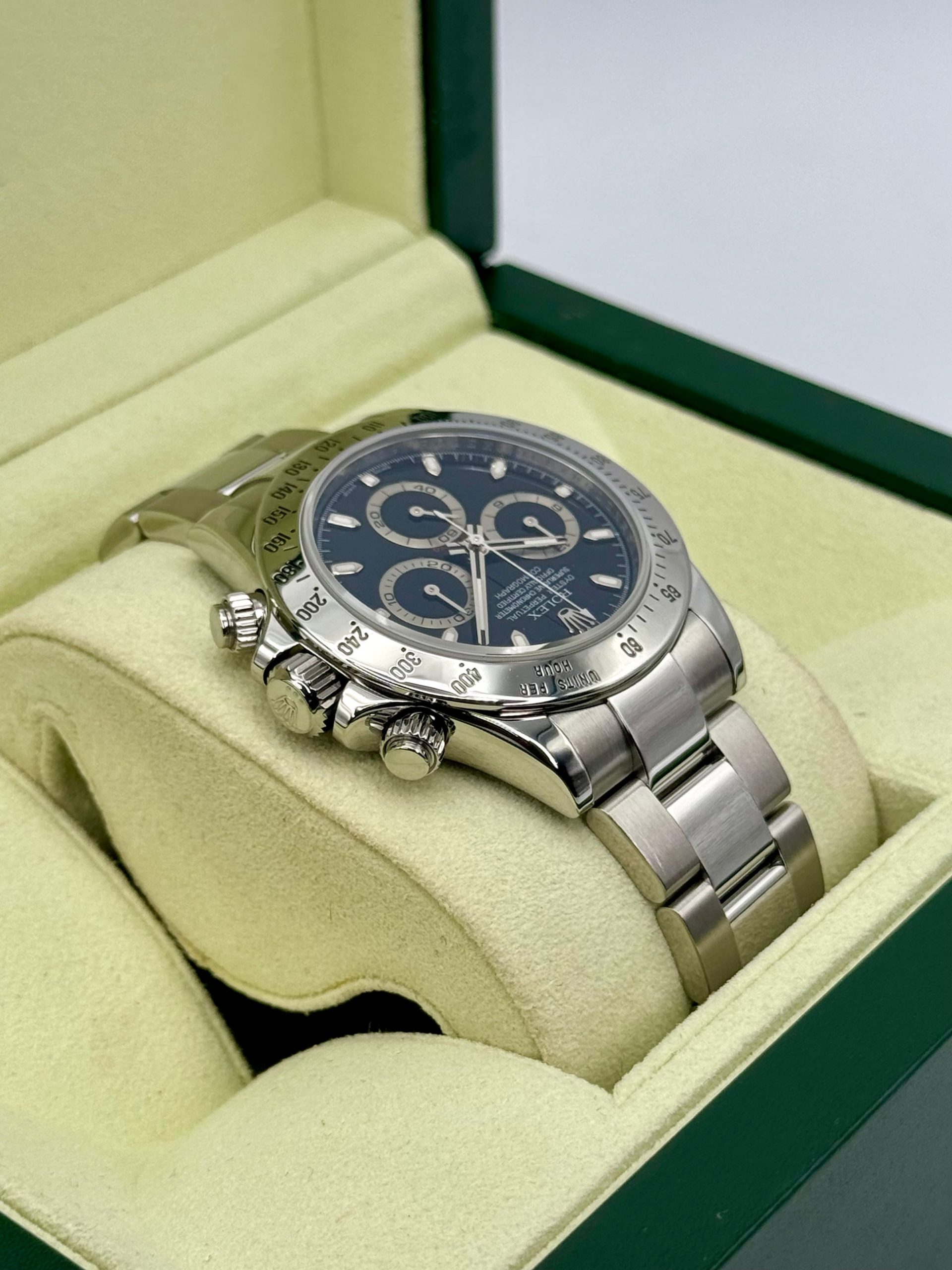 All Rolex watches listed on our site have been tested by a Rolex Service Provider who holds a Rolex parts account. If a Rolex watch is not operating within Rolex specification, we will have it serviced prior to listing for sale, utilizing Rolex replacement parts as needed.