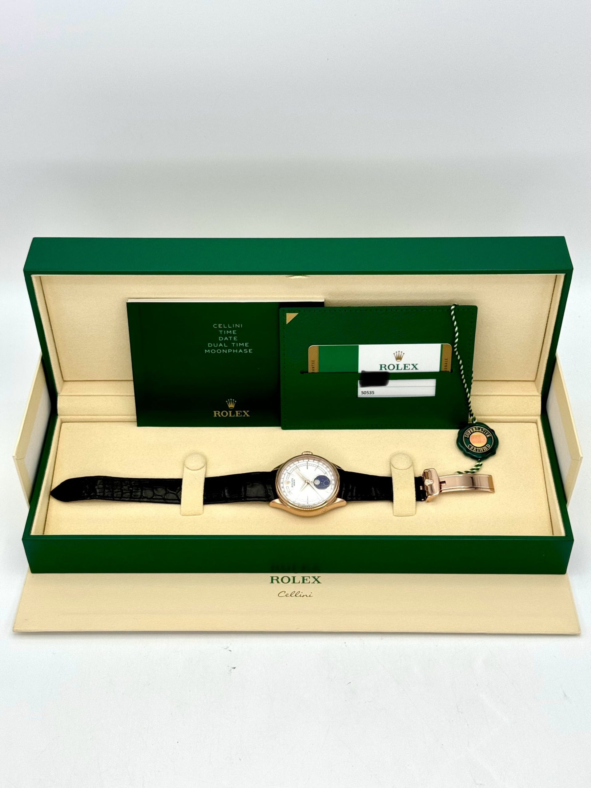 2022 Rolex Cellini Moonphase 39mm 50535 Rose Gold White Dial
