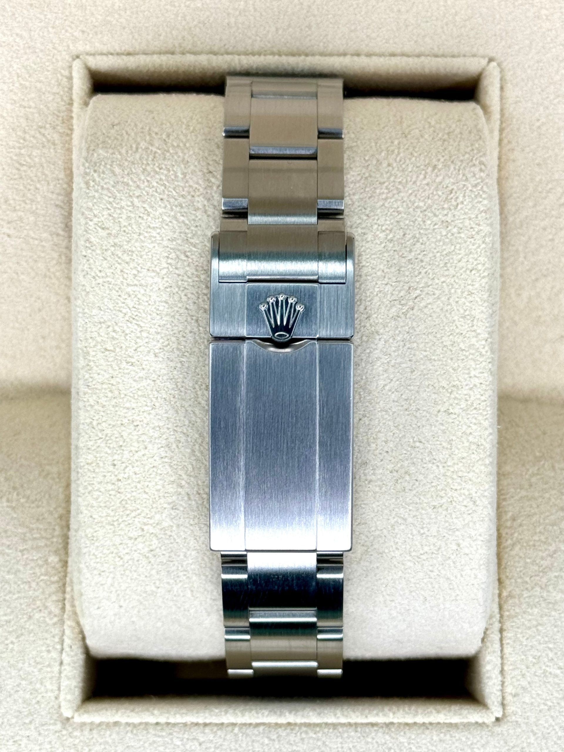 All Rolex watches listed on our site have been tested by a Rolex Service Provider who holds a Rolex parts account. If a Rolex watch is not operating within Rolex specification, we will have it serviced prior to listing for sale, utilizing Rolex replacement parts as needed.