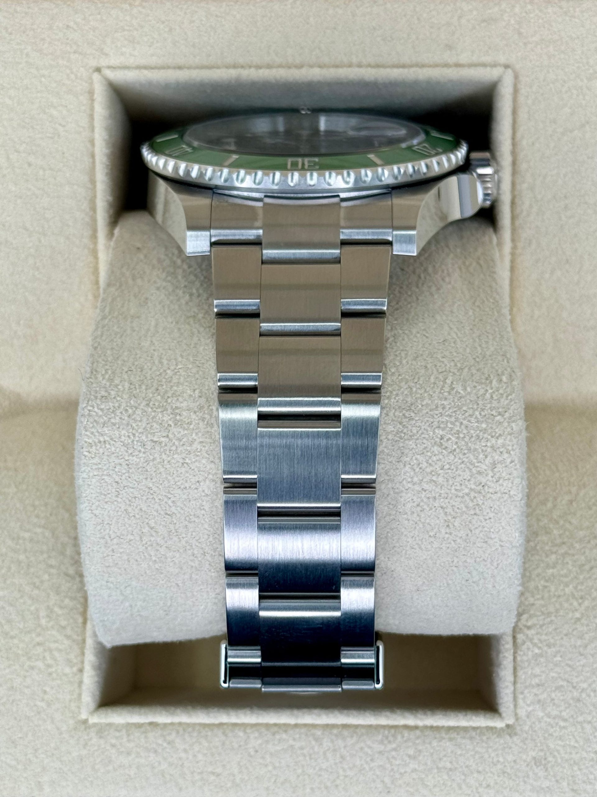 Note: We do occasionally get watches that have aftermarket bezels, or customized by professional companies such as BLAKEN. The listing for the watch will clearly state any aftermarket parts such as a bezel that has been added to the watch. This is not common, but occasionaly we do offer them for sale due to high demand.